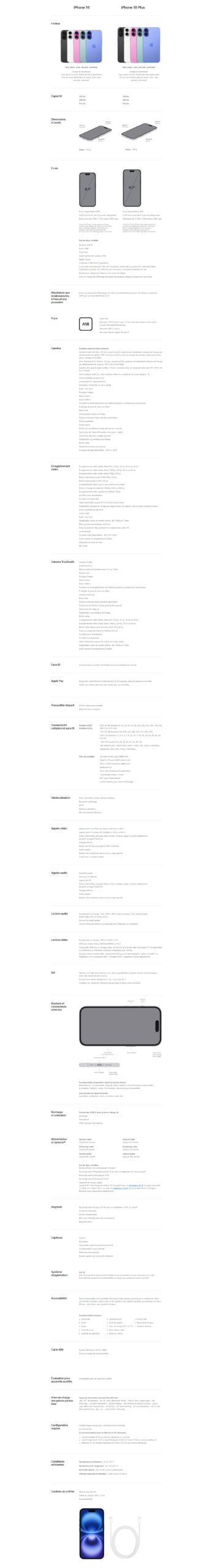 Découvrez la puce A18. Une puce conçue sur mesure avec deux générations d’avance sur la puce A16 Bionic de l’iPhone 15. Sa puissance offre à la caméra des fonctionnalités avancées, comme les Styles photographiques et Commande de l’appareil photo. Et grâce à son exceptionnelle efficacité énergétique, l’autonomie est encore prolongée.